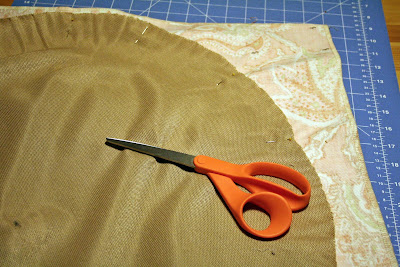 Step 1: I unscrewed the brass feet, peeled the brown paper off the bottom of the base and took the old upholstery fabric off that was stapled on the round plywood base.